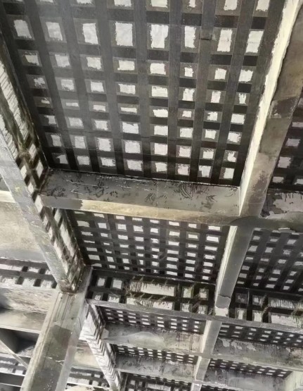 3、使用荊門碳纖維布配套的修補(bǔ)膠對混凝土表面較大孔洞、凹面、漏筋等缺陷進(jìn)行修補(bǔ)找平;