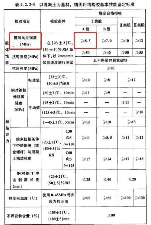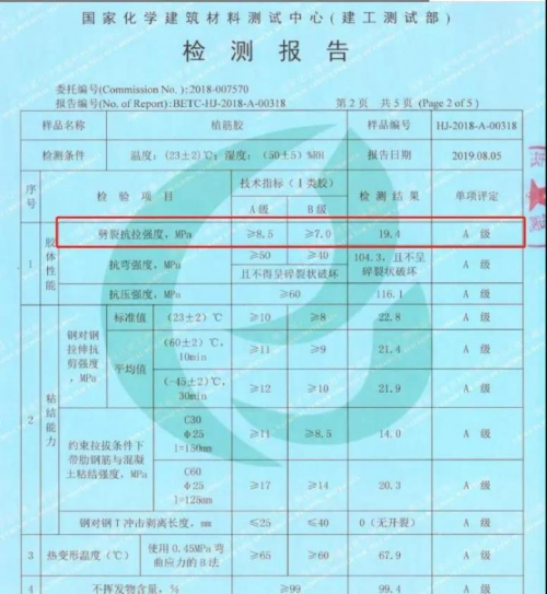 而植筋膠多被用在鋼筋混凝土結(jié)構(gòu)中,同樣其劈裂抗拉強度也是很重要的參考指標(biāo),它指的是塑性變形直到出現(xiàn)裂源,材料所能抵抗的最大拉力下的強度,主要反映植筋膠的錨固力,意義重大。